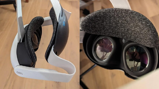 他们从 Meta Quest Pro 和 Lynx-R1 等 MR 头显中借鉴了设计,这两款设备都取消了面垫,提供遮光器作为替代。