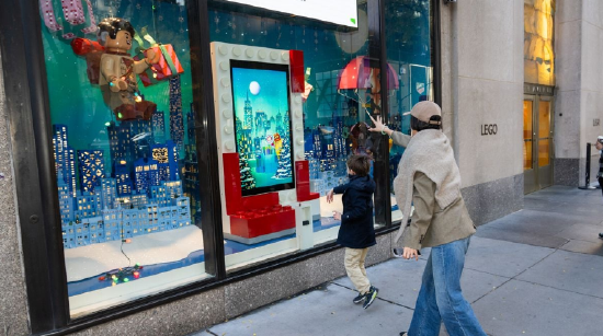 Snow Throw 将展示在乐高纽约和伦敦旗舰店的橱窗里,购物者可以挑战投掷数字化雪球,看看哪个城市投掷的雪球更多,每家店都有一个实时排行榜帮助记分。