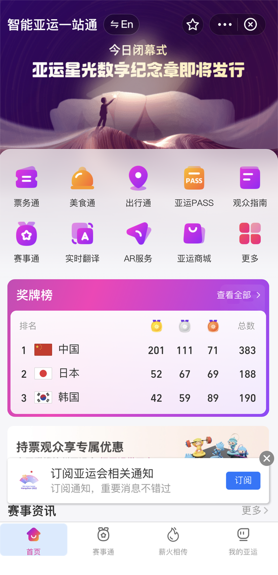 首个一站式数字观赛服务平台——智能亚运一站通亚运会举办期间,杭州这座城市,以非常亮眼的形象出现在世界面前,汇聚了全球的目光。